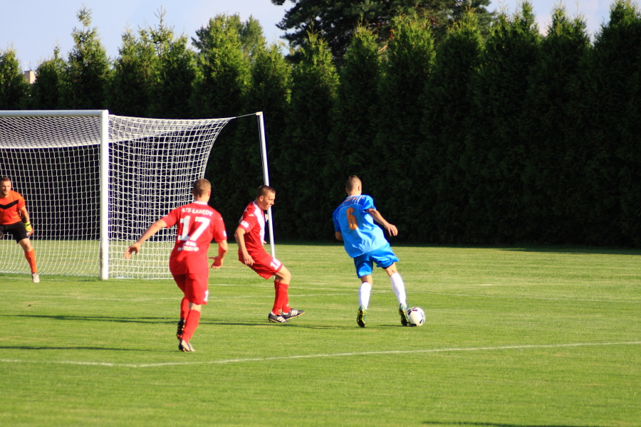 W środę 24 przy Fiołkowej odbyło się spotkanie drugiej rundy Pucharu Polski. Na Fiołkową zawitał nasz ligowy rywal – Jedność 32 Przyszowice. Mecz stał na przyzwoitym poziomie, a jako pierwsi na listę strzelców wpisali się goście. W 9 minucie po nieporozumieniu w linii obrony i niepewnym wyjściu Tomka Kasprzika, piłkarze Jedności objęli prowadzenie. Po utracie gola przez ŁTS mecz się otworzył i nie brakowało okazji z jednej jak i z drugiej strony. W 11 minucie świetnie interweniował Kasprzik, podobnie jak w 26 i 36 minucie, z drugiej strony dobre akcje Łukasza Plecha w 12 i 37 minucie nie przyniosły rezultatu. Przed zakończeniem pierwszej połowy doskonałą akcję przeprowadzili Krzysztof Dłubała i Adam Bielec, jednak piłka ponownie nie znalazła drogi do siatki. Łabędzianie równie mocno rozpoczęli drugą połowę i już w 48 minucie po dośrodkowaniu Dłubały z rzutu rożnego, gola zdobył Piotr Sigmundzik, sprawiając sobie fantastyczny prezent urodzinowy. Na tablicy wyników widniał remis 1-1. Kolejne minuty gry przebiegały w szybkim tempie, ciekawych akcji i dobrych interwencji bramkarzy nie brakowało, jednak dziesięć minut przed końcem fantastycznym uderzeniem z dystansu popisał się zawodnik z Przyszowic, Kasprzik wyciągnął się jak struna, jednak nie miał szans na udaną interwencję. Piłka odbiła się od słupka i wylądowała w siatce. Łabędzianie do samego końca próbowali doprowadzić do wyrównania, jednak tego dnia nie było im to już dane. Tym samym żegnamy się z tą edycją Pucharu Polski ulegając w drugiej rundzie Jedności 32 Przyszowice 1-2.