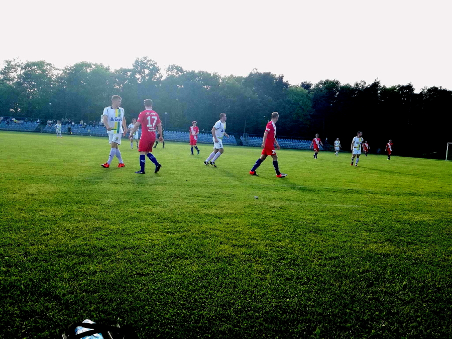 Sobotnie spotkanie ŁTS zaczął niezwykle agresywnie, w pozytywnym tego słowa znaczeniu. Już w 3 minucie Adamczyk nieznacznie przegrał pojedynek z bramkarzem gości. W 5 minucie powinno być już 1:0, niestety strzał Marcina Rochowicza wybronił Ryszard Morgała, a dobitka Dawida Majerowskiego z kilku metrów poszybowała wysoko nad bramką. Po kolejnych dwóch minutach rajd z prawej strony wykonał Damian Pająk, ale jego dośrodkowania nikt w polu karnym nie wykończył. Po kwadransie do głosu zaczęli dochodzić goście, a w 18 minucie Tomek Kasprzik popisał się dwoma fenomenalnymi interwencjami. W końcówce pierwszej połowy gra się wyrównała, obie drużyny próbowały szczęścia strzałami z dystansu – Procek po stronie gości i Dłubała po stronie ŁTSu.