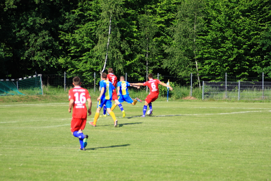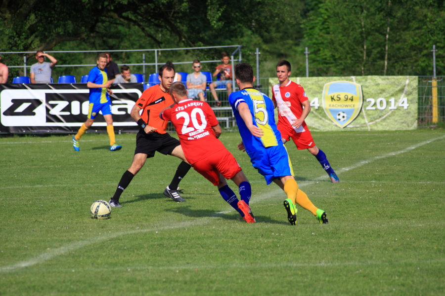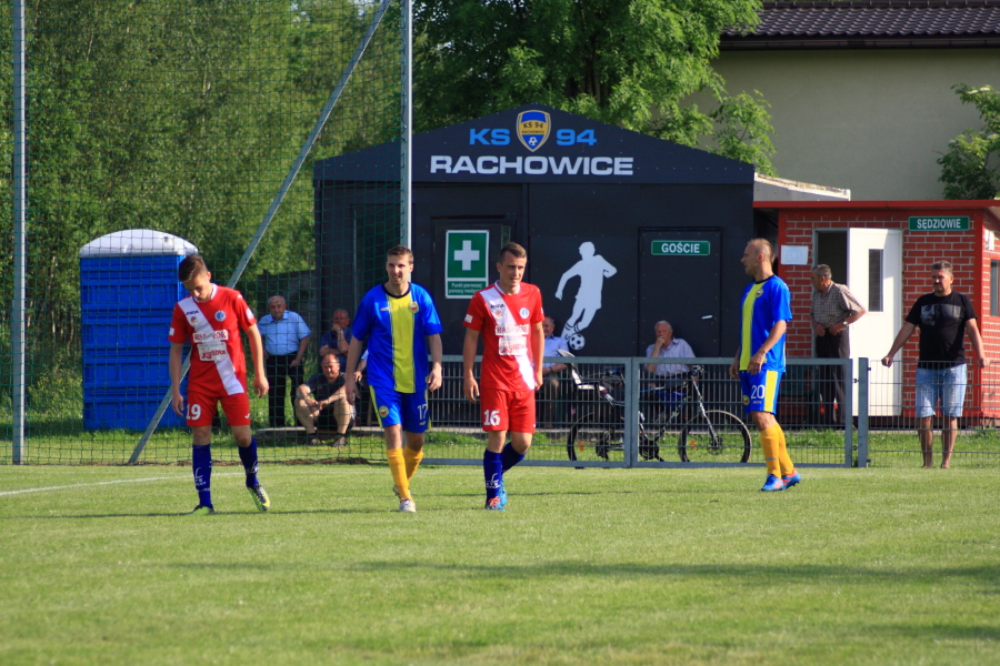 Piłkarze ŁTS w ramach 28 kolejki udali się na wyjazdowe spotkanie do Rachowic. W sobotnie popołudnie pogoda nie zachęcała do wielkiego wysiłku, było parno i duszno, więc piłkarze dopasowali się do warunków pogodowych i rozegrali raczej spokojne spotkanie. Jako pierwsi zaatakowali gospodarze, celny strzał po ziemi spokojnie wyłapał Kasprzik. Po upływie 10 minut Rachowice wykonywały rzut rożny, który zakończył się celnym strzałem głową, ale gola gospodarzom nie przyniósł. Po tych wydarzeniach swoją obecność na boisku zaakcentowali łabędzianie. O ile strzał z rzutu wolnego Dłubały minął bramkę w znacznej odległości, to już w 16 minucie piłka znalazła drogę do siatki. Piłka po rzucie rożnym spadła w pole bramkowe, a największym refleksem wykazał się Michał Rochowicz i było 1:0. W dalszej części pierwszej połowy szczęścia próbował jeszcze dwukrotnie Bartosz Błachut, ale jego strzały nie mogły zrobić krzywdy gospodarzom.