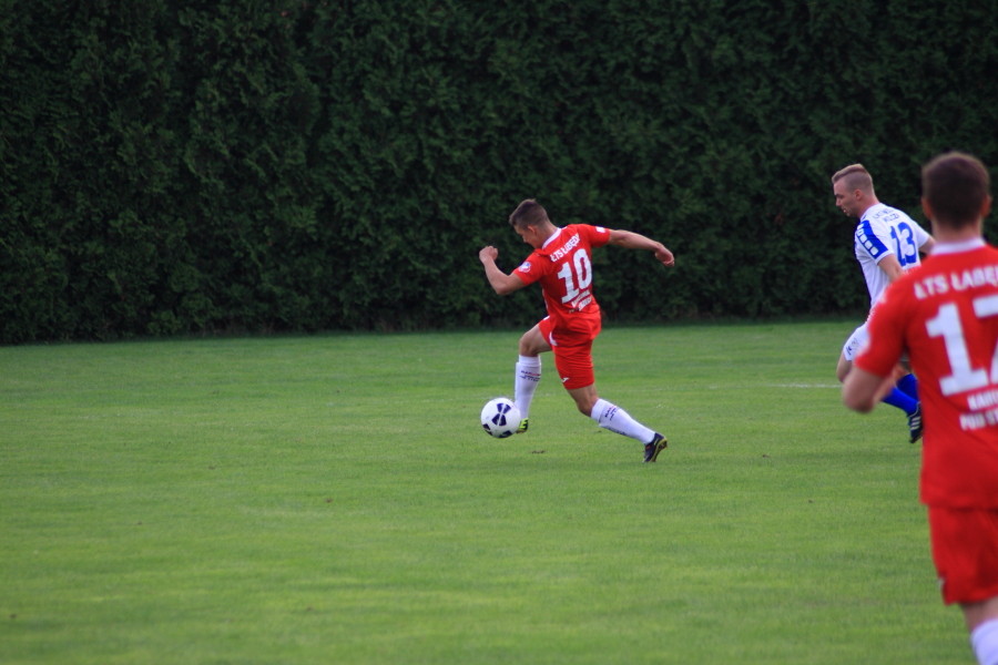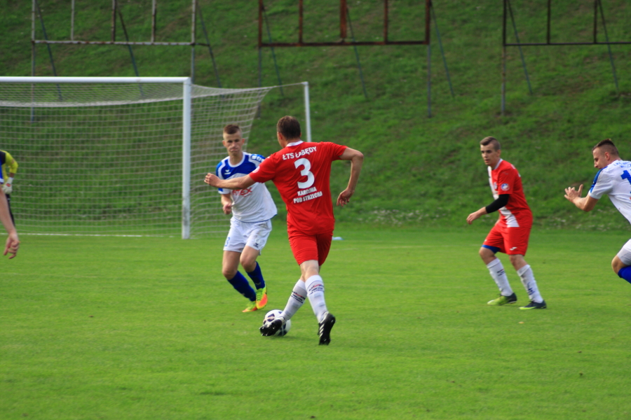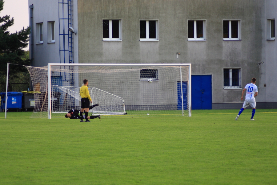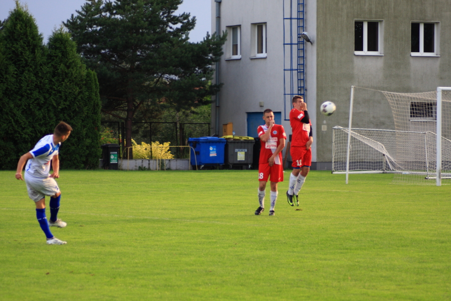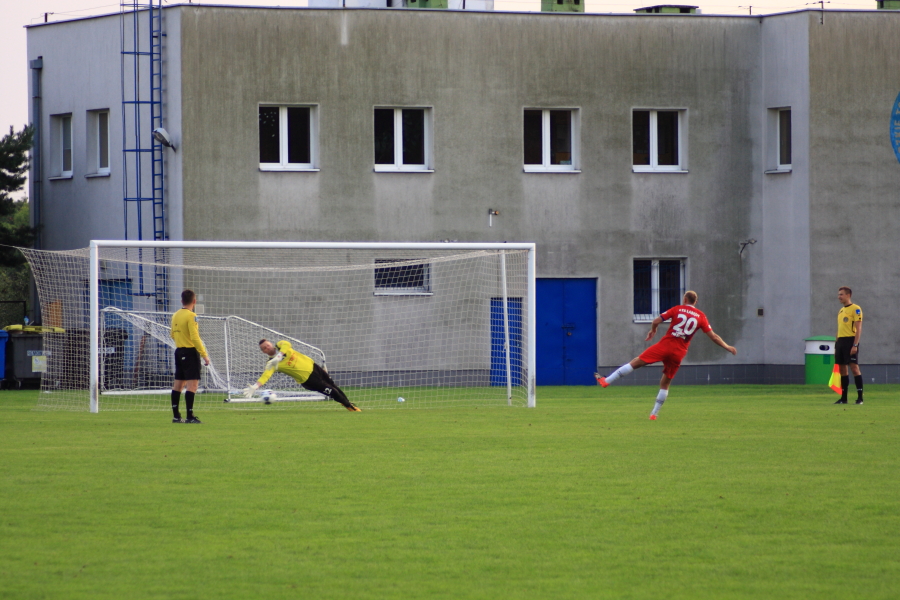 Pierwsza połowa wtorkowego meczu nie porwała kibiców, dowodem niech będzie, iż pierwszy niecelny strzał w kierunku bramki odnotowaliśmy w 18 minucie. Obie drużyny postawiły na grę obronną i wykazywały należny rywalowi respekt, nie angażując zbyt dużych sił w ataku. Dużo walki w środku pola nie zapowiadało gola, jednak od czego jest w naszej drużynie Sławomir Kantor. W 33 minucie nasz kapitan przejął piłkę na połowie rywali i huknął z dystansu otwierając wynik w tym spotkaniu. Po zdobyciu bramki łabędzianie próbowali podwyższyć wynik, ale próby Seweryna Wesołowskiego oraz Łukasza Bałuszyńskiego nie przyniosły efektu.