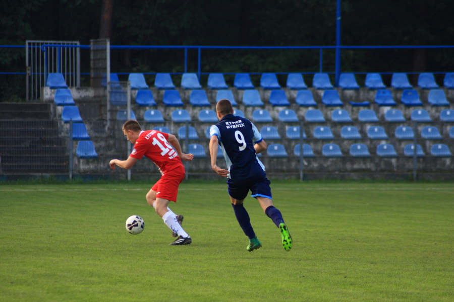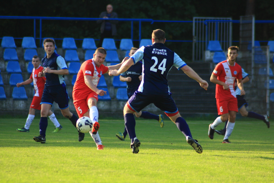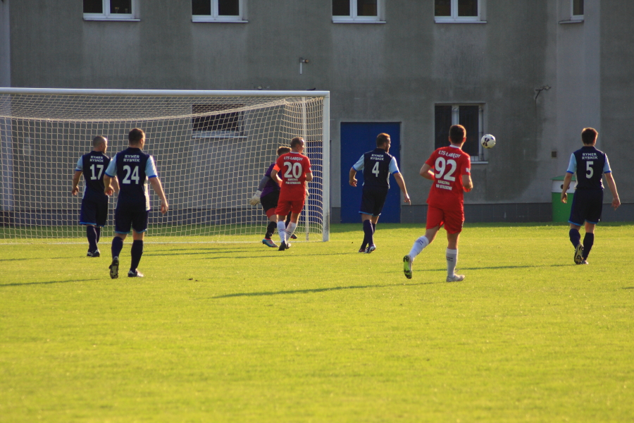 Piłkarze Rymera przyjechali na Fiołkową drugi raz w przeciągu niespełna czterech miesięcy i po raz drugi wracali do Rybnika z bagażem czterech straconych goli. Nieplanowana tygodniowa przerwa, spowodowana fatalnymi stanami muraw na większości obiektów, piłkarze ŁTS spożytkowali bardzo pozytywnie i w sobotnim spotkaniu od pierwszego gwizdka byli bardziej aktywni od swoich przeciwników. Przed spotkaniem piłkarze i kibice uczcili pamięć zmarłego w ubiegłym tygodniu Andrzeja Radwańskiego, byłego piłkarza ŁTS. Już po upływie niespełna 180 sekund od rozpoczęcia meczu na tablicy wyników widniał rezultat 1:0, ładną akcją oraz precyzyjnym płaskim strzale przy słupku popisał się Łukasz Bałuszyński. Balu miał okazję podwyższyć wynik już pięć minut później, niestety nieczysto trafił piłkę. W tym przypadku zadziałało powiedzenie „co się odwlecze to nie uciecze” i Balu zdobył swoja druga bramkę w 27 minucie po idealnym prostopadłym podaniu z głębi pola. W międzyczasie łabędzianie nie wykorzystali innych dobrych sytuacji, między innymi Dawid Majerowski posłał piłkę nad poprzeczką, podobnie jak Ireneusz Duda uderzając piłkę głową po dośrodkowaniu aktywnego tego dnia na lewym skrzydle Majerowskiego. Po tych wydarzeniach celnie strzelali jeszcze Kantor i Gorlicki, ale te strzały bramkarz Rymera zdołał wybronić. Przed przerwą do głosu doszli goście, w 37 minucie Jakub Czarnecki w doskonałej sytuacji trafił w poprzeczkę, a 3 minuty później po kilku przypadkowych zagraniach w polu karnym piłka odbiła się od Mateusza Marcola i przelobowała Kasprzika. Po przerwie łabędzianie postanowili szybko rozwiać wątpliwości co do losów spotkania. W 50 minucie Piotr Sigmundzik podwyższył prowadzenie ŁTS na 3-1 ładnym strzałem głową, a niespełna minutę później gospodarze po kolejnej ładnej akcji ustalili wynik na 4:1. Po tych dwóch ciosach Rymer nie był już w stanie odpowiedzieć, a łabędzianie spokojnie kontrolowali przebieg meczu do ostatniego gwizdka arbitra.