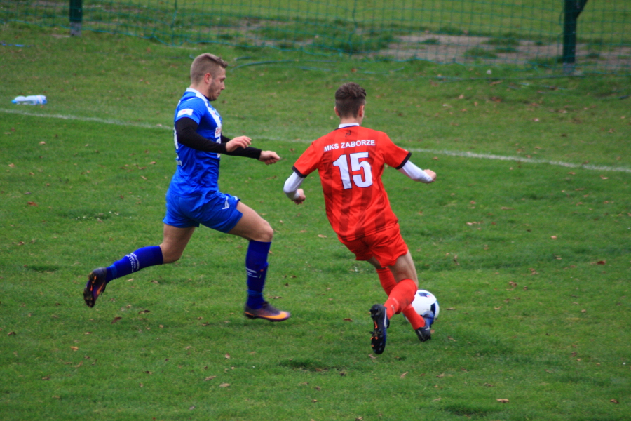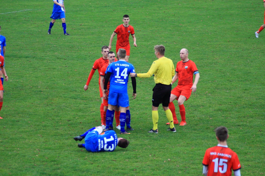 Piłkarze ŁTS pewnie pokonali MKS Zaborze 6-1 w ramach 11 kolejki sezonu, zacierając szarobury obraz porażki sprzed tygodnia, o którym już niemal wszyscy zapomnieli. Łabędzianie wyszli na sobotnie spotkanie skoncentrowani i od pierwszej minuty nie pozostawili złudzeń, kto w tym dniu będzie rozdawał karty. Jako pierwszy gola postanowił zdobyć Rafał Adamczyk. W 7 minucie spudłował, ale już w 12 po dośrodkowaniu Dłubały z wolnego umieścił piłkę w siatce dając ŁTS-owi prowadzenie. Po stracie gola Zabrzanie próbowali jeszcze nawiązać walkę, ale Opiela dwukrotnie odbił strzał gospodarzy. Potem łabędzianie zdominowali już wydarzenia na murawie raz po raz rozdzierając obronę MKS-u długimi podaniami. W 17 minucie gospodarzom uciekł Bielec, został jednak sfaulowany przed polem karnym. 7 minut później w podobnej sytuacji znalazł się Bałuszyński i z zimną krwią zamienił okazję na bramkę. Gospodarze wyraźnie nie nadążając za łabędzianami uciekali się do fauli co z każdą minutą podsycało niezdrową atmosferę na boisku, a arbiter był…..obecny. Pod koniec pierwszej i na początku drugiej połowy dwie bramki powinien sobie dopisać Piotr Sigmundzik, niestety nie zdołał pokonać golkipera Zaborza. W 59 minucie nasz najskuteczniejszy snajper (czytaj Balu) podwyższył na 3:0, a 85 minucie skompletował hattricka. Pomiędzy tymi trafieniami na listę strzelców wpisał się Rafał Perczyński, wchodząc na pełnej prędkości z lewego skrzydła i posyłając atomowe uderzenie do siatki rywali z narożnika pola karnego. W 86 minucie Balu mógł strzelić swojego 4 gola, ale wykazał się altruizmem i wyłożył piłkę do pustej bramki Michałowi Morozowi, który strzelił swoją pierwszą bramkę w tym sezonie. W doliczonym czasie gry Marcin Jakubowski zdobył honorowego gola z rzutu karnego dla gospodarzy, odgwizdanego przez arbitra, który był…..obecny. BRAWO ŁTS!!