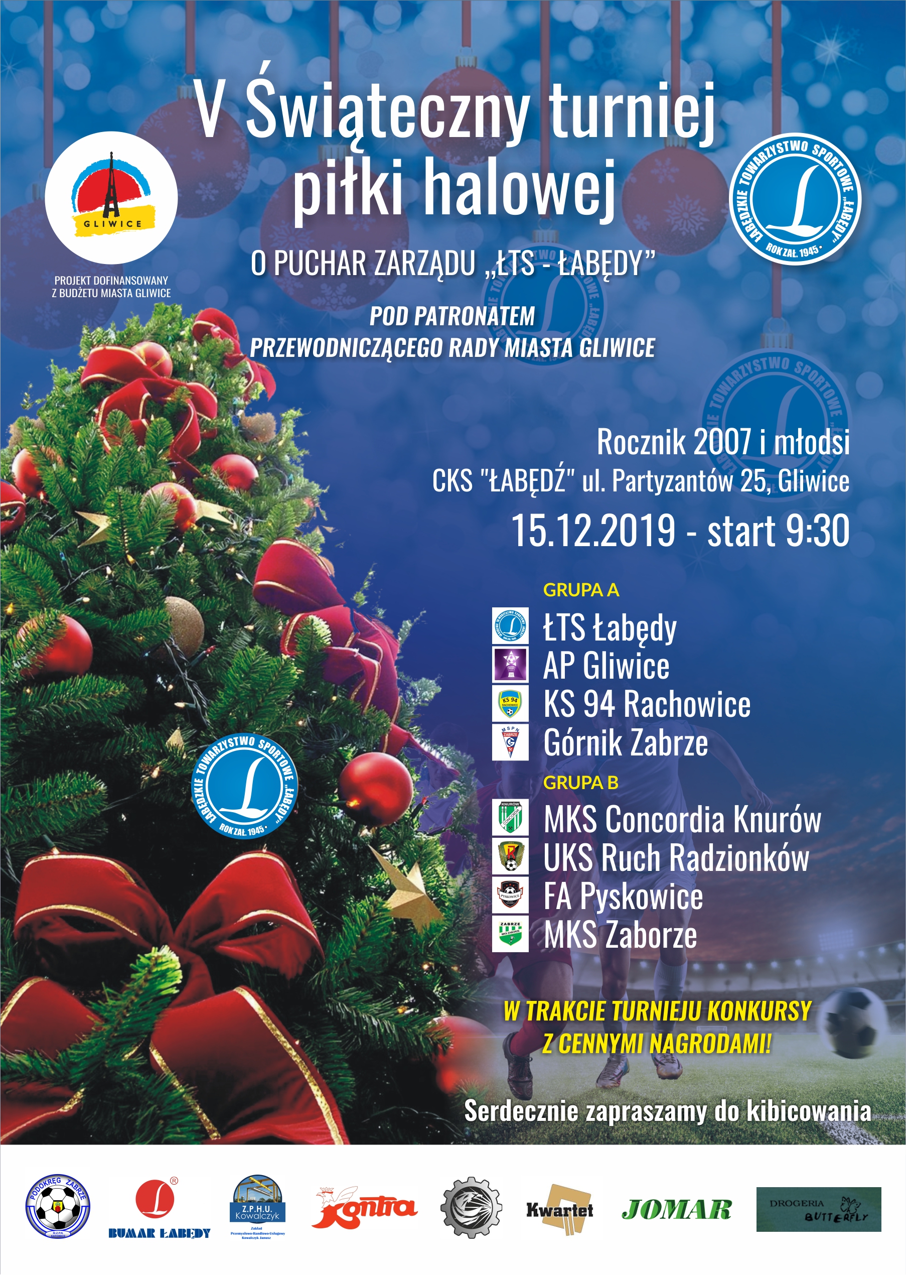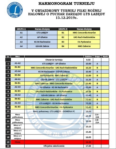 Już 15 Grudnia w Centrum Sportowo Kulturalne "Łabędź" odbędzie się już V edycja Świątecznego Turnieju - rocznik 2007 i młodsi.