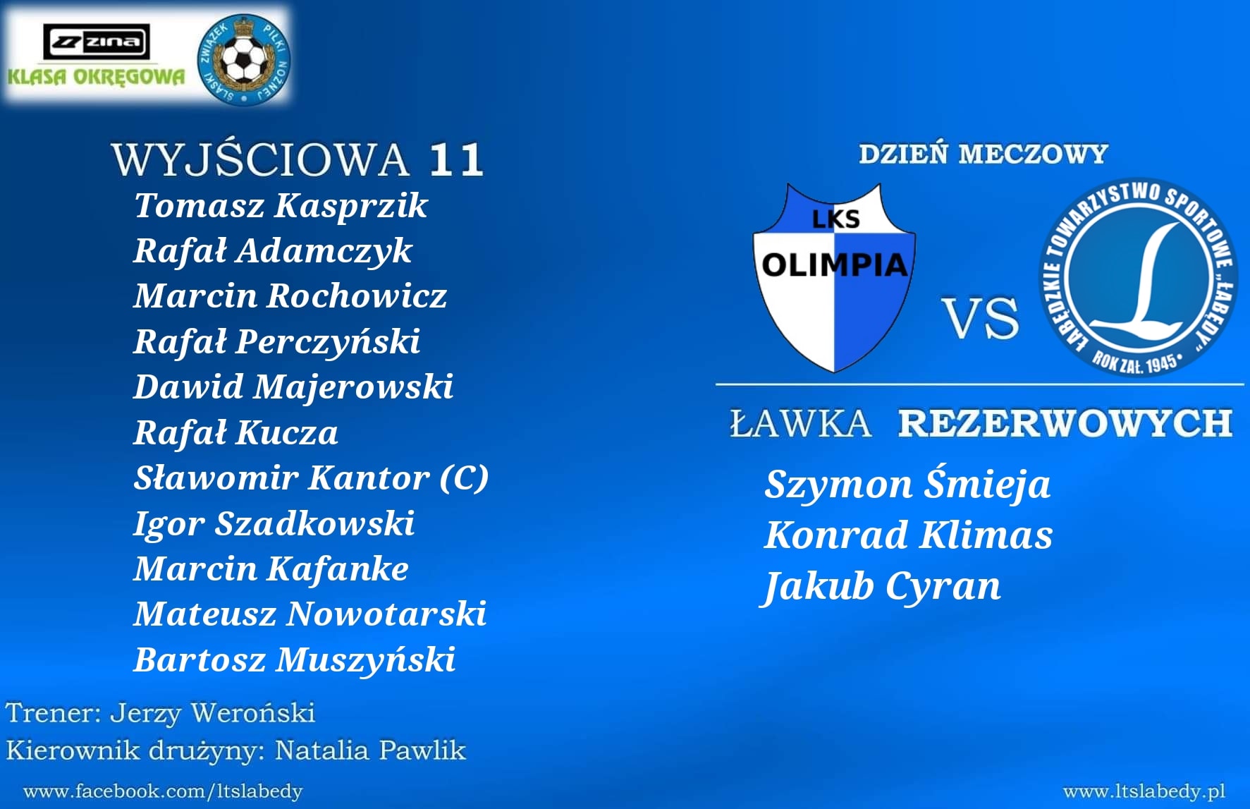 Wczoraj biorąc pod uwagę, nasze problemy kadrowe, spodziewaliśmy się nieco trudniejszego meczu, potrafiliśmy jednak prowadzić grę i do 35 metra od bramki przeciwnika wyglądało to naprawdę nieźle, takie przynajmniej miałem wrażenie z perspektywy boiska. Szkoda straconej bramki, bo przeciwnik nie potrafił sam sobie stworzyć klarownych sytuacji, jednak takie rzeczy jak rykoszet w piłce się zdarzają i niestety w naszym przypadku, dziś zagrało to na naszą niekorzyść. Dla mnie napewno bardzo pozytywnym aspektem meczu, bo muszę przyznać, że jako Trener grup młodzieżowych patrzę też trochę inaczej na występy naszych młodych zawodników, było pełne 90 minut Bartka Muszyńskiego i Mateusza Nowotarskiego, którego bramka dała nam z resztą remis i 1 punkt w dzisiejszym spotkaniu.