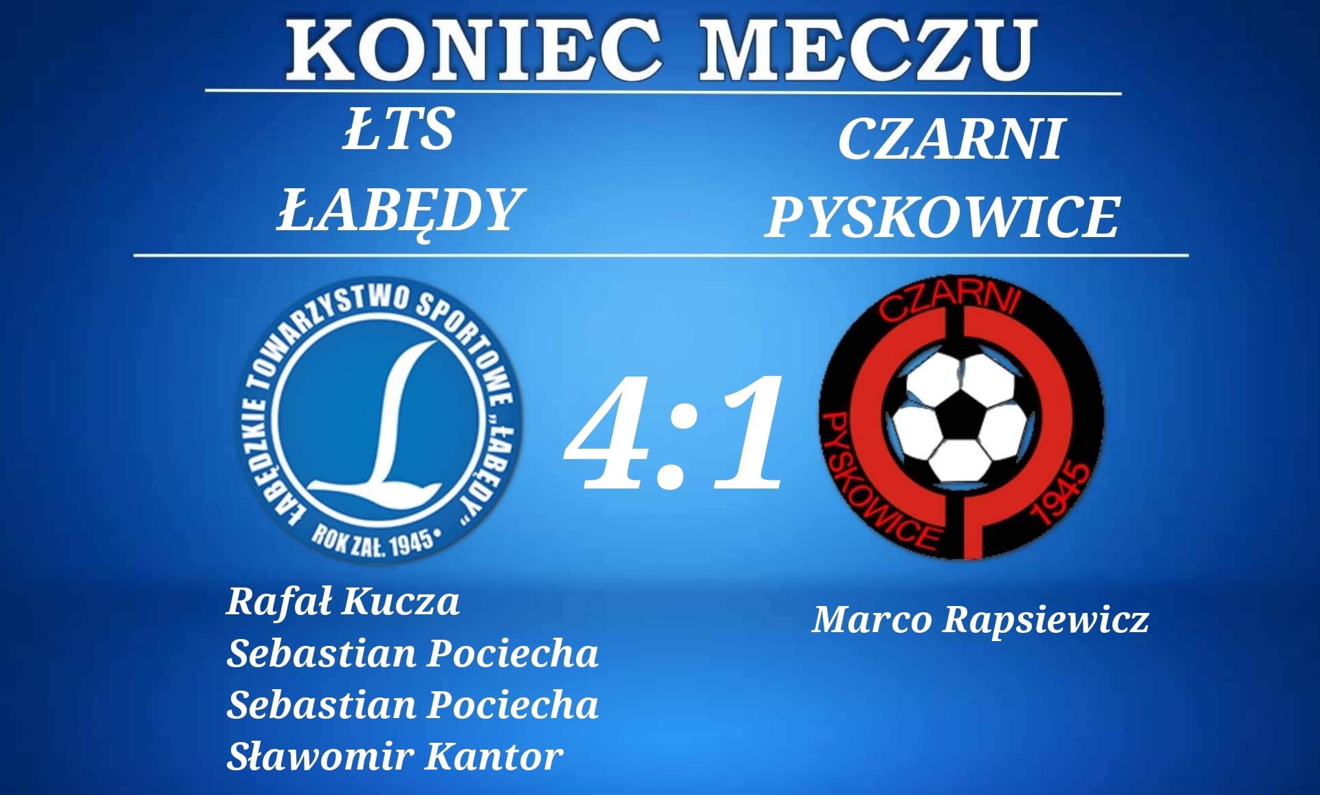Wygrywamy DERBY!!Opublikowano: 30 sierpień 2021 | Odsłony: 864W 4 kolejce Ligi Okręgowej wygrywamy w Derbowym spotkaniu z Czarnymi Pyskowicami 4:1. Bramki dla Łts-u:Sebastian Pociecha x2Rafa KuczaSławomir Kantor Poprzedni artykuł Następny artykuł Dodaj komentarz Imię (obowiązkowe) E-Mail (obowiązkowe) Strona internetowa Zawiadom mnie o nowych komentarzach Odśwież Wyślij Skasuj