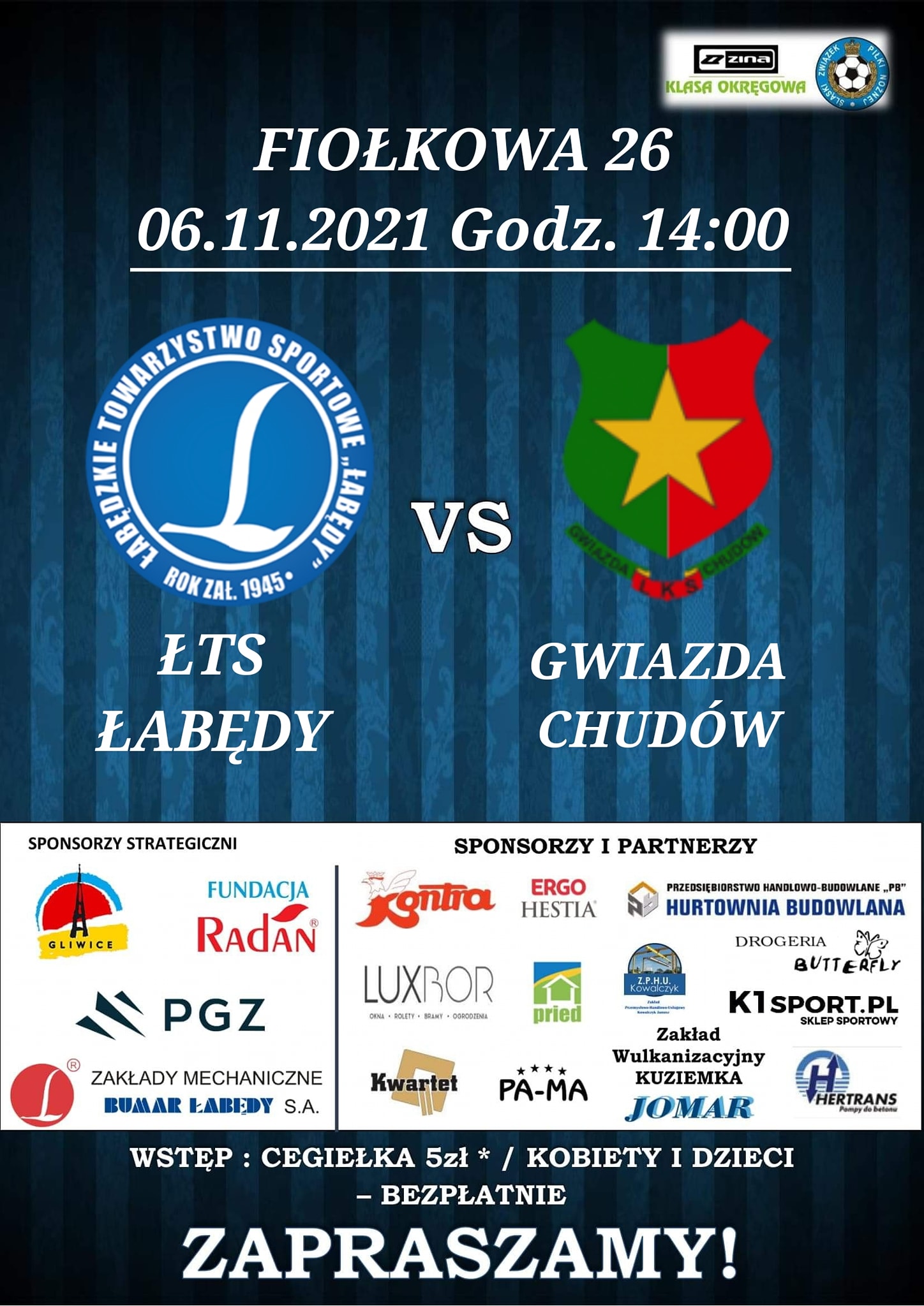Aktualnie drużyna z Chudowa zajmuje 6 pozycję, w ostatniej kolejce zremisowali na własnym boisku z Przyszłością Ciochowice. Przypominamy że w czasie tego spotkania odbędą się wybory na Najlepszego Piłkarza Roku 2021 w ŁTS Łabędy. Serdecznie zapraszamy na to spotkanie i oddanie głosu na swojego faworyta.