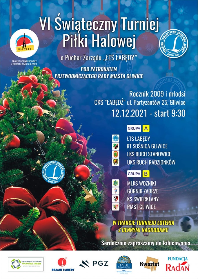 Już 12 Grudnia czeka nas 6 edycja Świątecznego Turnieju Piłki Halowej o Puchar Zarządu "ŁTS ŁABĘDY".